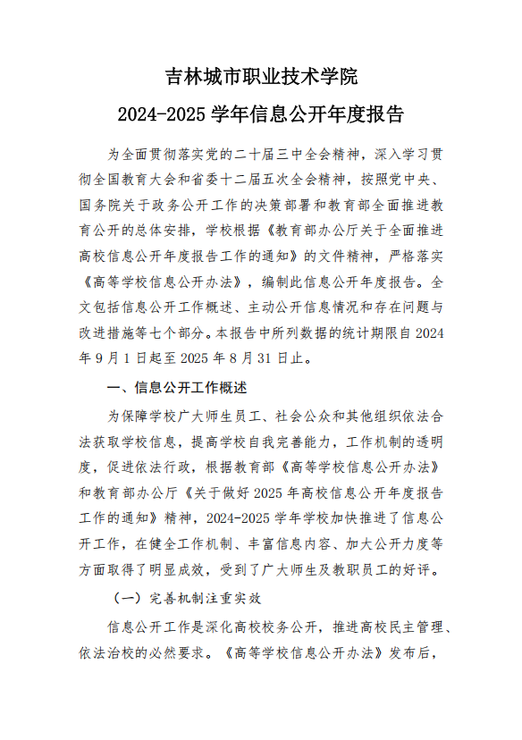 吉林城市职业技术学校 2024-2025学年信息公开年度报告.docx