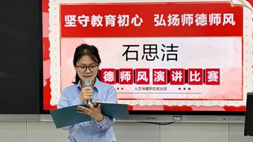 为深入贯彻落实习近平总书记关于师德师风建设的重要指示精神,着力打造政治素质过硬、业务能力精湛、育人水平高超的高素质教师队伍,4月24日下午,人文传媒学院党支部精心组织开展"坚守教育初心,弘扬师德师风"主题演讲比赛。此次活动旨在通过教师风采展示,筑牢师德根基,涵养教育情怀,为构建风清气正的教育生态注入精神动力。