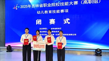 4月28日-4月29日,由吉林省教育厅主办、松原职业技术学院承办的2025年吉林省职业院校技能大赛(高职组)“幼儿教育技能”赛项圆满落幕。经过激烈的角逐,我校人文传媒学院婴幼儿托育服务与管理专业的学生王艺霏、柳睿娜、娄文博、李杨(领队:吕巍,指导老师:黄胥卓、曹晓雪)荣获三等奖。
