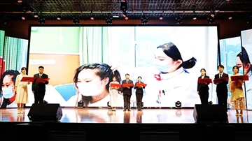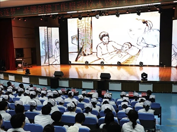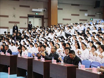 授帽仪式环节庄重神圣。吉大一院徐兆宁护士长作为授帽嘉宾,与医药学院护理教师一起为学生戴上象征圣洁的燕尾帽。烛光摇曳中,全体学生高举右拳宣誓:“以生命守护生命,用行动践行誓言!”现场还通过视频回顾护士节历史,重温南丁格尔精神,激励学子以仁心仁术书写医者担当。