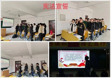 教师在课堂上播放宪法宣誓视频,点明宣誓活动的重要意义,聚焦宣誓过程的庄严性,强调宣誓动作与承诺的紧密联系,带领学生进行宪法宣誓活动,强调以宪法为行动纲领,牢记自身肩负的责任和使命,展现出学生对宪法的忠诚与敬重。