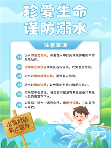 禁止到水库、水坑、江、河、湖、海等野外场所游泳、洗澡、嬉戏、钓鱼;若发现有人溺水,不要盲目施救,要及时大声呼救并拨打110、120急救电话。