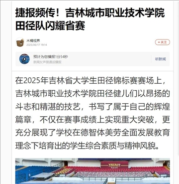 2025年6月18日,百度、搜狐、微博等多个媒体平台转发我校田径队以110分的优异成绩,获得男女团体总分第五名、男子团体总分第三名(铜杯),共揽获4金2银1铜,打破3项省纪录,书写了属于自己的辉煌篇章,充分展现了鼎博app官方下载在德智体美劳全面发展教育理念下培育出的学生综合素质与精神风貌。