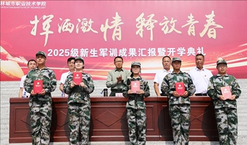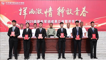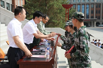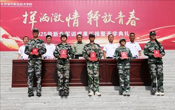 为表彰先进、树立榜样,大会宣读了2025级学生军训先进集体与个人表彰通令,军训优胜方队、特色表演方队代表及内务标兵、训练标兵代表先后上台领奖,领导为获奖集体与个人颁发荣誉证书,鼓励全体新生以先进为标杆,继续锤炼意志品质。