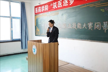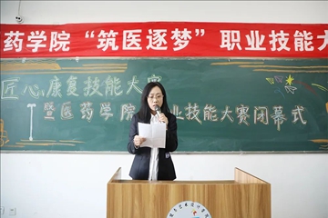 闭幕式尾声,医药学院院长张旭做了总结发言。张旭院长以“健康所系,性命相托”的医者使命开篇。强调赛事不仅是技能竞技的舞台、也是专业素养的集中展现,更是学生成长的历练,这份经历,必将为同学们未来的职业生涯奠定更加坚实的基础!张院长表示:本次大赛,是医药学院践行职业教育理念、检验教学成果、锤炼学生技能的一次集中展示和盛大阅兵。同学们用专业操作与专注态度呈现了一场场各展所长的技能比拼,充分彰显了专业实力。最后,她勉励全体学子:将赛场上展现出的拼搏精神、严谨态度和创新意识,融入到今后的学习和工作中,不断夯实理论基础,强化技能训练,提升综合素养,努力成长为德技并修、无愧于时代的高素质医药卫生人才。