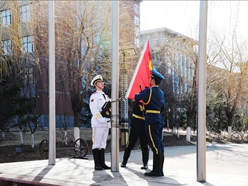 晨曦初照,国旗护卫队迈着铿锵步伐护卫国旗入场。雄壮的《义勇军进行曲》奏响,五星红旗冉冉升起,全体师生肃立注目、高唱国歌,爱国情怀与安全使命感在心中激荡。