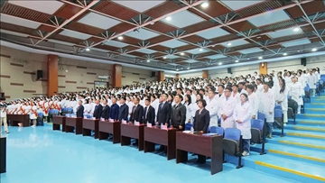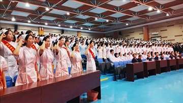 张院长表示,同学们今日许下铮铮誓言,表达了选择医学的信念和践行誓言的决心,这不仅是对社会的承诺,也是对自己和家人的承诺!挽救生命,守护健康,需要有高尚的道德、精湛的医技,甚至是关键时刻决断的勇气。因此,希望同学们爱我所选,敬畏生命;时刻谨记“健康所系、性命相托”的医者初心,珍惜在校学习的宝贵时光,勤学多思、勇于实践,不断提高与时代发展和医护行业要求相适应的能力和素质,努力做一名有责任、有担当,有温度、有情怀、德才兼备、情理兼修的新时代医学人。同时,要遵章守纪、心存大爱,培养阳光心态,在逐梦医学的青春赛道上,跑出最好的成绩!