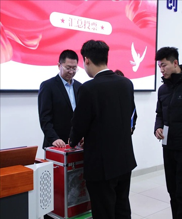 大会民主选举开始,候选人根据顺序依次上台进行演讲。全体与会代表依次上台投出自己手中的一票,行使自己的权利。