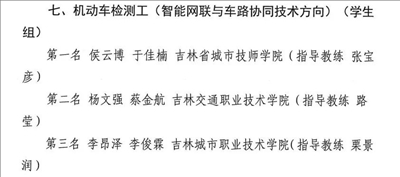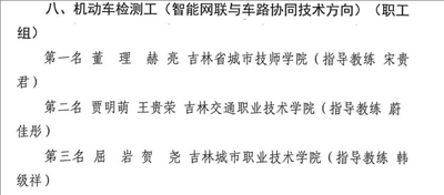 汽车维修检验工(智能载运综合技术方向)学生组第三名