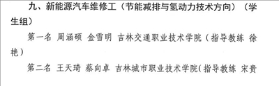 新能源汽车维修工(节能减排与氢动力技术方向)学生组第二名