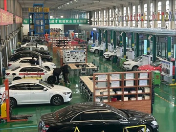 在实训基地,同学们认真擦拭着每一辆汽车,不放过任何一处污渍和灰尘。同学们或蹲在车旁,或踮起脚尖,认真擦拭着车身的每一处漆面。对于新能源汽车的各种设备,大家也在老师的指导下进行细致的检查和清洁。在模拟营销区,同学们则重点对办公桌椅、展示架等进行了清洁和整理。