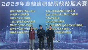 4月12日,由吉林省教育厅主办、吉林电子信息职业技术学院承办的2025年吉林省职业院校技能大赛“Web前端开发”赛项圆满收官。在我校首次参与的这项赛事中,城市服务与数字学院派出的两支参赛队伍大放异彩。由杨新颖、张铭轩、张晟堃组成的1队,以及王皓、阚国庆、张皓组成的2队,凭借扎实精湛的专业技能与敢于突破的创新精神,从众多参赛队伍中脱颖而出,双双斩获三等奖,实现了我校在该赛事领域的“开门红”。